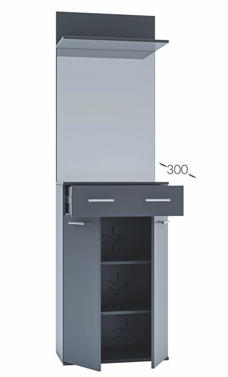 Předsíňová stěna vyrobená z kvalitní laminátové desky ( zadní panel HDF ). Korpus i dvířka jsou v barevném provedení bílá s 3D strukturou dřeva. Sestava se skládá ( š/v/h ) – panel s věšákem a komodou ( 60 × 200 × 30 cm ) a panel se zrcadlem a botníkem se zásuvkou ( 60 × 200 × 30 ). Další... více informací o zboží