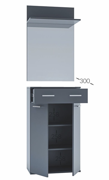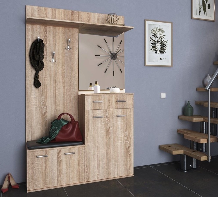 Předsíňová stěna vyrobená z kvalitní laminátové desky ( zadní panel HDF ). Korpus i dvířka jsou v barevném provedení dub sonoma. Sestava se skládá ( š/v/h ) – panel s věšákem a komodou ( 60 × 200 × 30 cm ) a panel se zrcadlem a botníkem se zásuvkou ( 60 × 200 × 30 ). Další rozměry viz... více informací o zboží