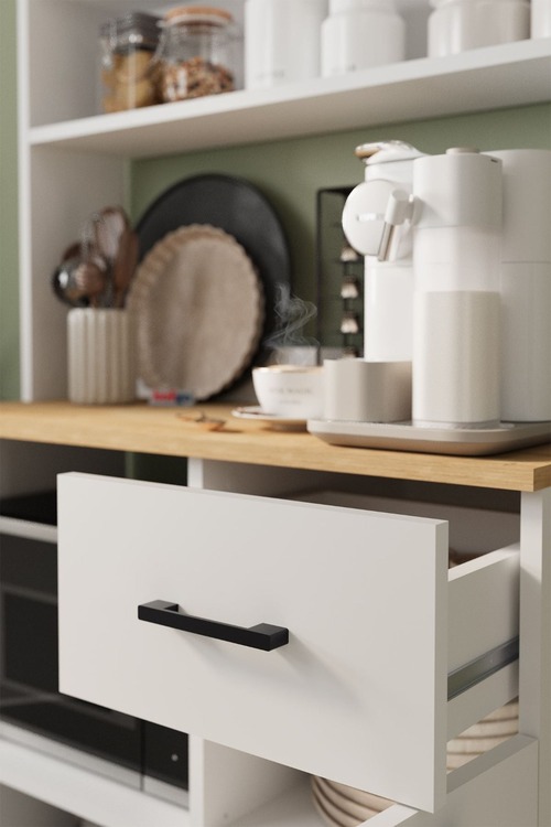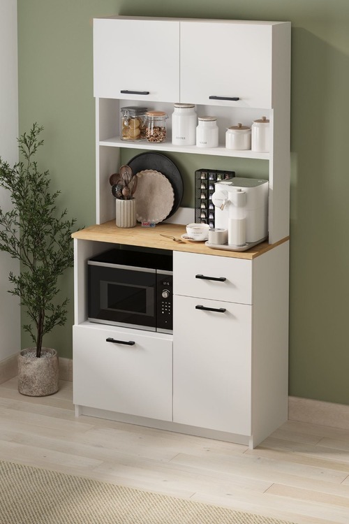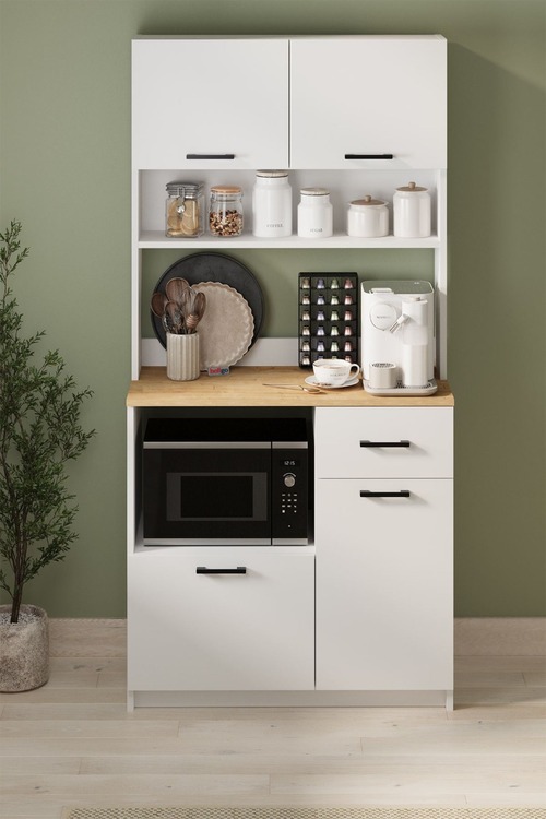 Skříňka do kuchyně je v nadčasovém bílém provedení díky čemuž dokonale zapadne do různých interiérů. Skříňka na mikrovlnku s pracovní plochou poskytuje dostatek úložného prostoru i pohodlné místo pro přípravu jídel. Otevřené i uzavíratelné části umožňují přehledné uspořádání... více informací o zboží