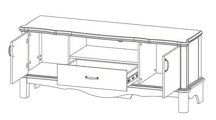 Pevné ozdobné nožičky dodávají nábytku stabilitu. Obsahuje 2 dvířka a 1 zásuvku.
