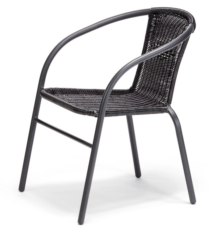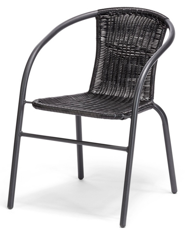 Balkonová židle. Díky volbě materiálu je lehce omyvatelná a její údržba není nijak náročná. Křeslo je z ocelové konstrukce, sedák je z plastu. Výška sedu křesla je 42 cm, hloubka sedu je 39 cm. Barevné provedení – černá.