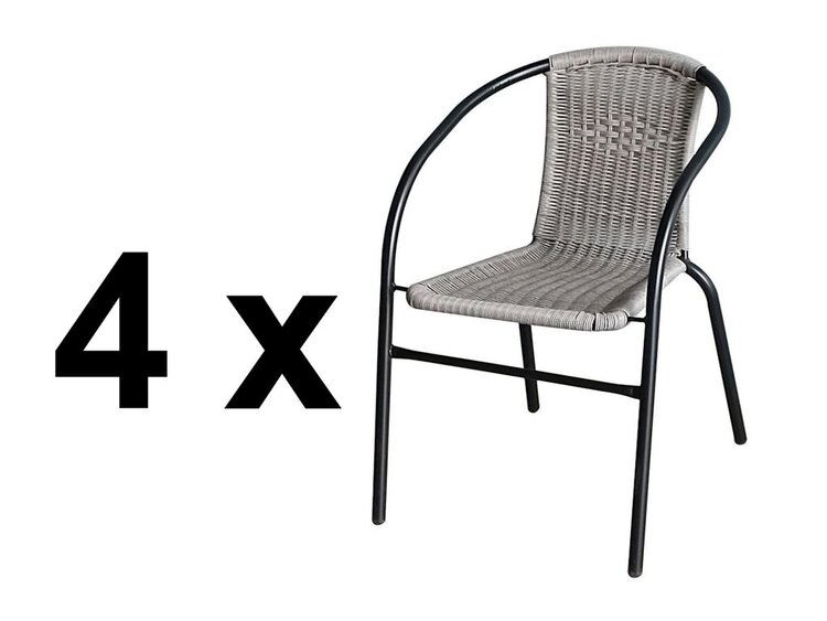 Balkonová židle. Díky volbě materiálu je lehce omyvatelná a její údržba není nijak náročná. Křeslo je z ocelové konstrukce černé barvy, sedák je z umělého ratanu šedé barvy. Výška sedu křesla je 42 cm, hloubka sedu je 39 cm.