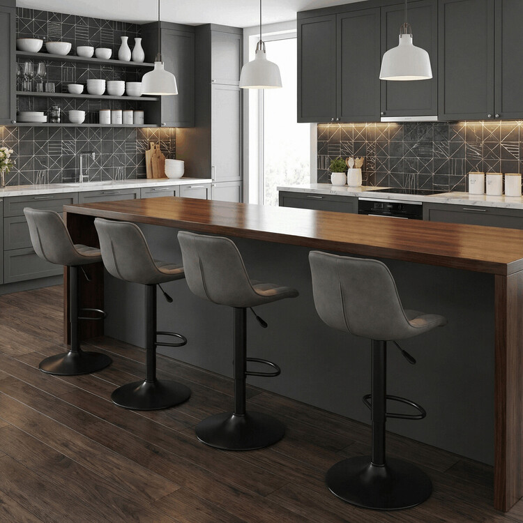 Barová židle AUB-V3066 GREY3 kombinuje moderní design s praktickými funkcemi pro pohodlné sezení u barového pultu či kuchyňského ostrůvku. Sedák a opěradlo jsou čalouněné šedou látkou s výrazným prošitím, které dodává židli stylový vzhled a zároveň zvyšuje komfort. Pevná kovová podnož v černé barvě je vybavena stabilní kruhovou základnou a praktickou opěrkou nohou pro lepší pohodlí. Výškově nastavitelný plynový píst umožňuje snadné přizpůsobení výšky sedáku podle potřeby, navíc je židle otočná o 360 stupňů, což zvyšuje její flexibilitu při používání. Celková konstrukce je navržena pro dlouhou životnost a stabilitu v běžném provozu.