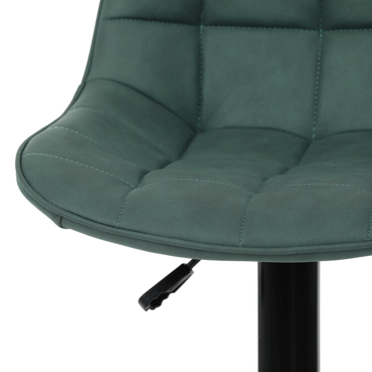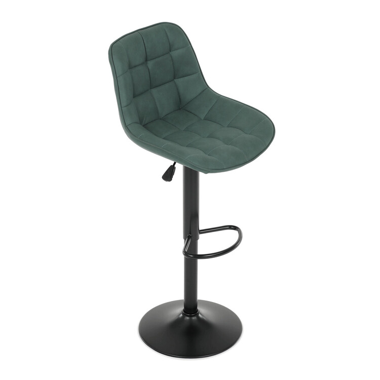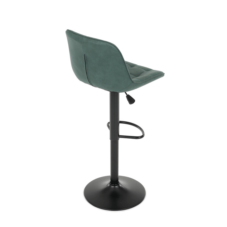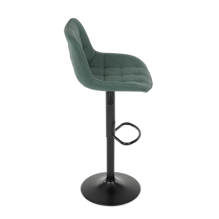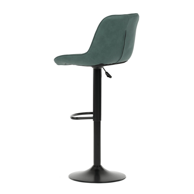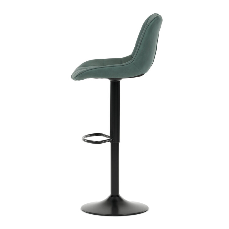Barová židle AUB-V3066 GRN3 kombinuje moderní design s praktickými funkcemi pro pohodlné sezení u barového pultu. Sedák i opěradlo jsou potažené zelenou látkou v dekoru broušené kůže, která nabízí příjemnou texturu a snadnou údržbu. Designové prošití dodává židli výrazný vizuální efekt a zároveň zvyšuje komfort díky lepšímu tvarování sedáku. Stabilní podnož z černého kovu je vybavena otočným mechanismem a plynulým nastavením výšky, což umožňuje přizpůsobení podle potřeby uživatele. Praktický opěrný kruh poskytuje pohodlnou oporu nohou, zatímco celková konstrukce je navržena pro dlouhou životnost a stabilitu.