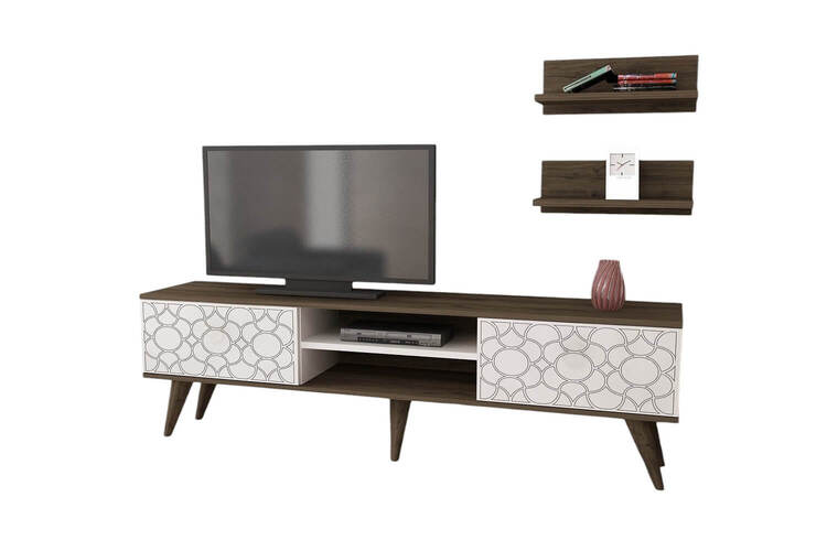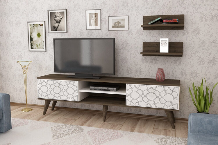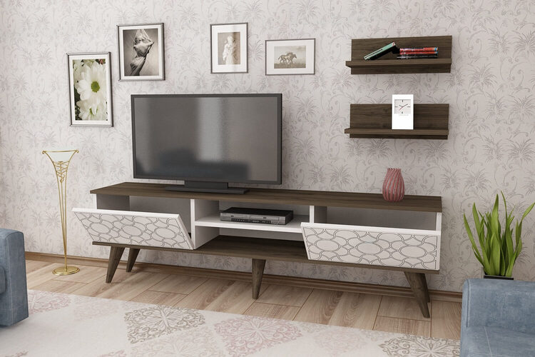 Vyrobena z kvalitního LTD materiálu o tloušťce 18 mm, obývací stěna zajišťuje pevnost a odolnost. Součástí této sestavy je praktický TV stolek, nástěnná police aregálek. TV stolek je vybaven dvěma dvířky, které poskytují dostatek úložného prostoru pro vaše multimediální zařízení a příslušenství. Minimalistické plastové úchytkydoplňují moderní vzhled stěny.