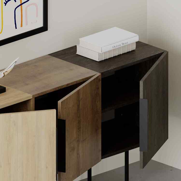 Konzolový stolek: Kombinace dubu, ořechu Hit a tmavé kávy pro moderní