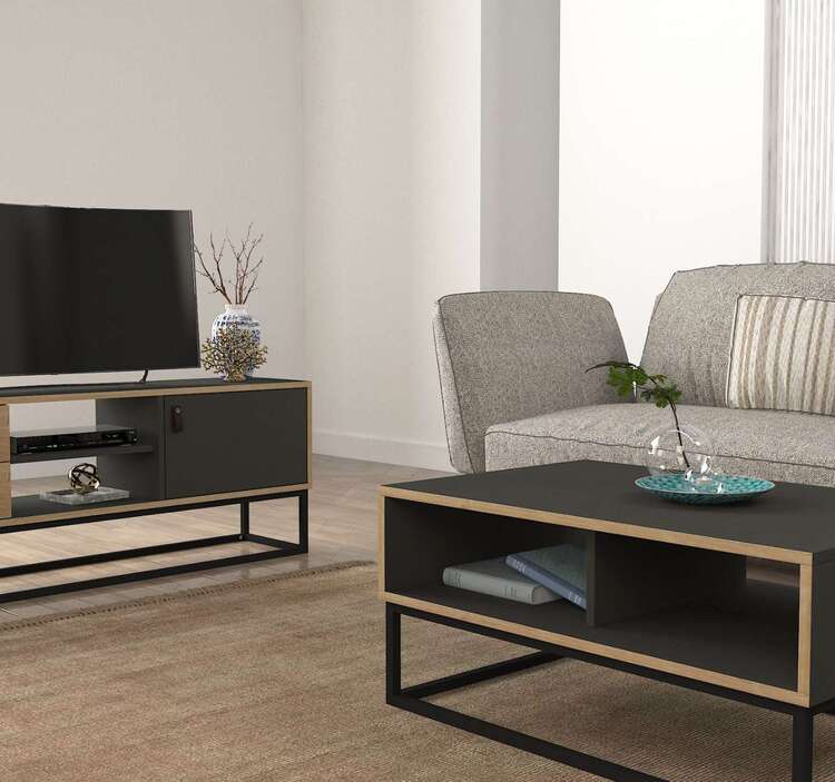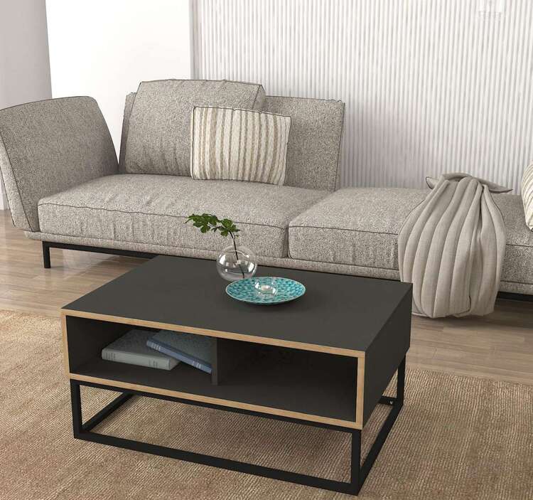 Konferenční stolek je ideální volbou pro ty, kteří hledají moderní a funkční nábytek s industriálním nádechem. Jeho kombinace antracitové a šedé barvy a minimalistický design přinášejí do vašeho domova svěžest a moderní styl, zatímco poskytují dostatek úložného prostoru pro všechny vaše potřeby.