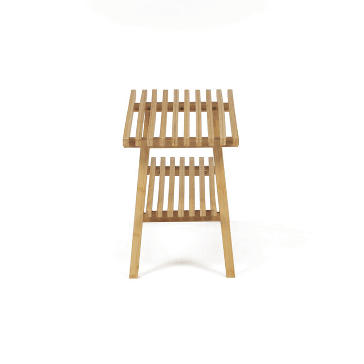 Botník z masivního bambusu v přírodním odstínu nabízí praktické a vzdušné řešení pro uskladnění obuvi. Jeho otevřená konstrukce s jednou policí umožňuje snadnou orientaci a rychlý přístup k botám, přičemž bambusové lamely zajišťují dostatečnou cirkulaci vzduchu. Stabilní nohy a pevné spojení jednotlivých částí podporují dlouhou životnost a odolnost proti běžnému zatížení. Díky přírodnímu vzhledu se botník hodí do různých interiérů, kde přináší příjemný přírodní akcent.