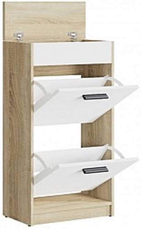 Botník GEO 521 je praktický a kompaktní kus nábytku, který nabízídvě výklopné zásuvky pro snadné uložení obuvi. S rozměry 55 × 91 ×21 cm je vhodný i do menších prostor, kde poskytne dostatek místa provaše boty. Díky výklopným zásuvkám je uspořádání obuvi jednoduché a... více informací o zboží