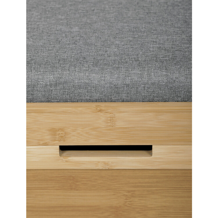 Botník DR-N1014 GREY2 značky Autronic kombinuje přírodní estetiku masivního bambusu s praktickým úložným prostorem a komfortním sedákem potaženým šedou látkou. Konstrukce je vyrobena z pevného a odolného bambusového masivu, který díky své přirozené struktuře a světlému odstínu dodává interiéru svěží a ekologický vzhled. Horní část botníku je opatřena měkkým polstrováním z kvalitní šedé textilie, která zajišťuje pohodlné sezení při obouvání. Úložný prostor je přístupný pomocí výklopného víka s praktickým výřezem pro snadné otevírání, což umožňuje efektivní uskladnění obuvi nebo dalších drobných předmětů. Stabilní rámová konstrukce z bambusu garantuje dlouhou životnost a pevnost, zatímco kompaktní rozměry botníku umožňují jeho umístění v předsíních i menších prostorách. Díky kombinaci přírodních materiálů a funkčních vlastností představuje tento botník ideální řešení pro organizaci domácnosti s důrazem na design i praktičnost.