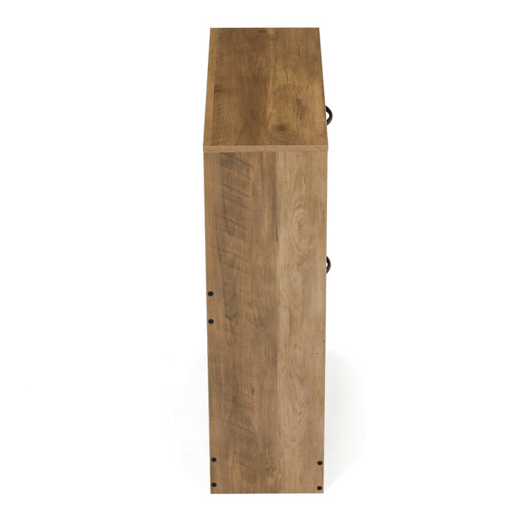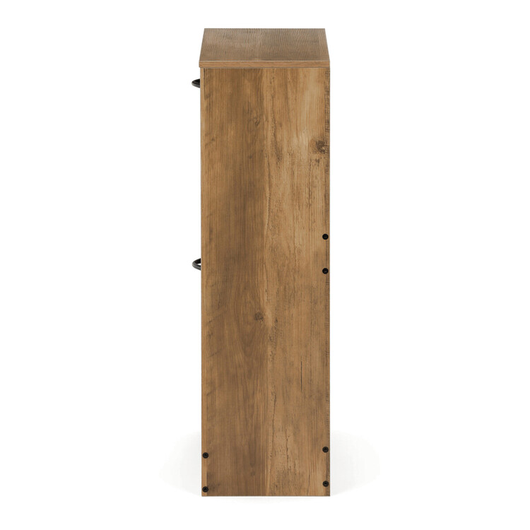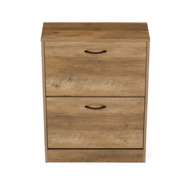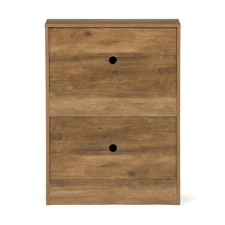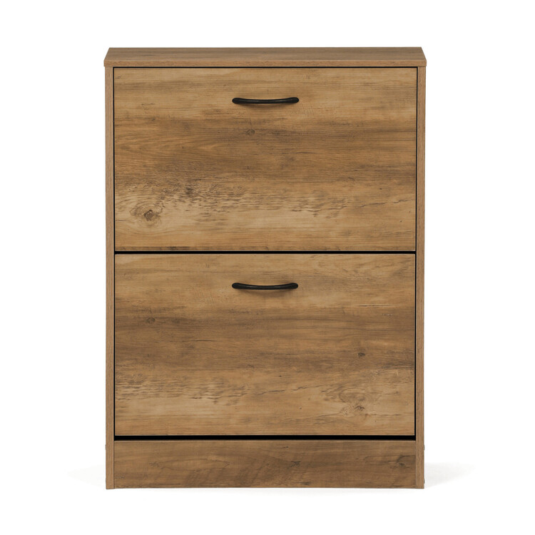 Botník s dvěma přihrádkami v dekoru jilm je vyroben z MDF desek v hnědém odstínu, který přináší do prostoru příjemnou přírodní atmosféru. Praktické výklopné dveře umožňují snadný přístup k uložené obuvi a zároveň šetří místo v předsíni. Pevné úchytky zajišťují pohodlnou manipulaci, zatímco kompaktní rozměry botníku umožňují jeho umístění i do menších prostor. Vnitřní prostor je rozdělen do dvou samostatných sekcí, které pomáhají udržet pořádek a přehlednost. Celkové provedení je navrženo pro dlouhou životnost a snadnou údržbu.