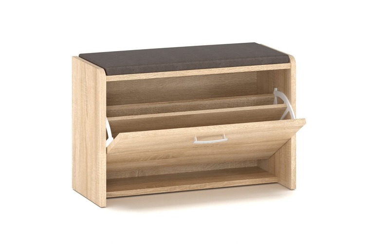 Botník s výklopnými dvířky a čalouněným sedákem. Korpus i dvířka jsou z kvalitní LTD v barevném provedení dub sonoma. Dodáváme v demontovaném stavu.CASA 97024
