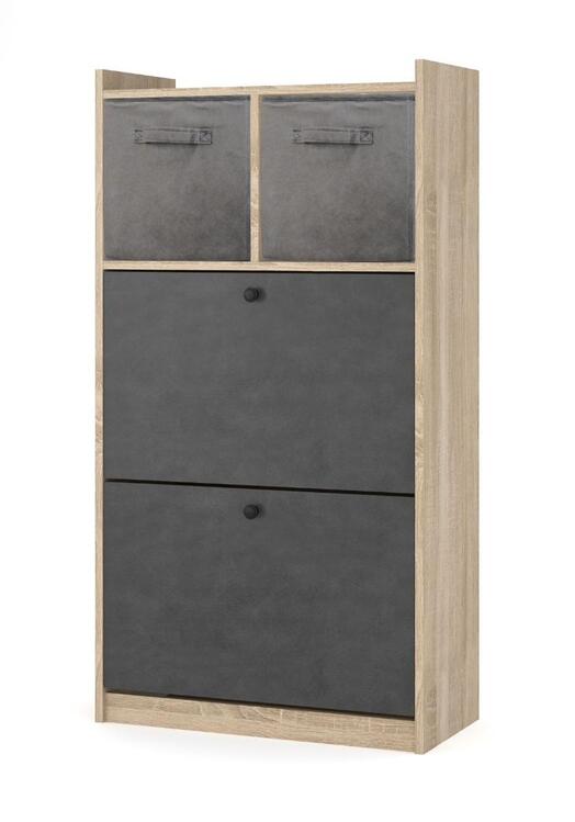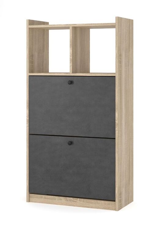 Botník se dvěma výklopnými dvířky, vyrobený z desky LTD v barveném provedení dub sonoma. Výklopná dvířka jsou v barvě šedá. K botníku je možné dokoupit látkové organizéry v šedé barvě. Dodáváme v demontovaném stavu.CASA 97042