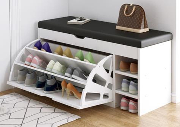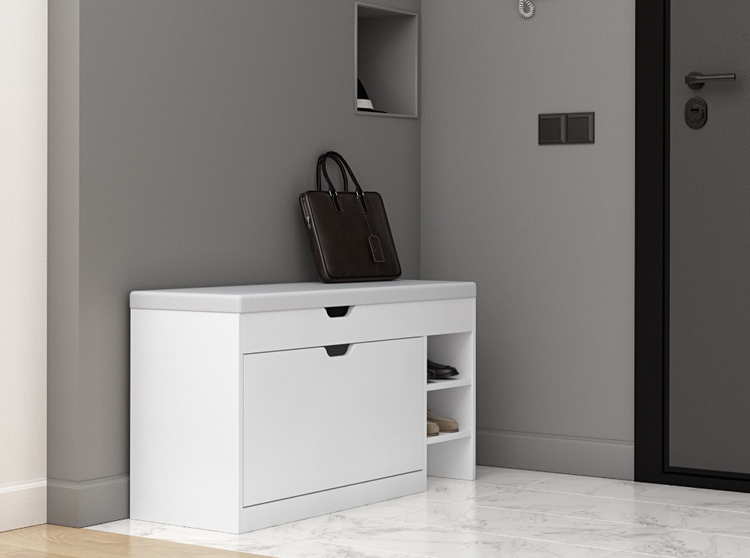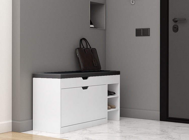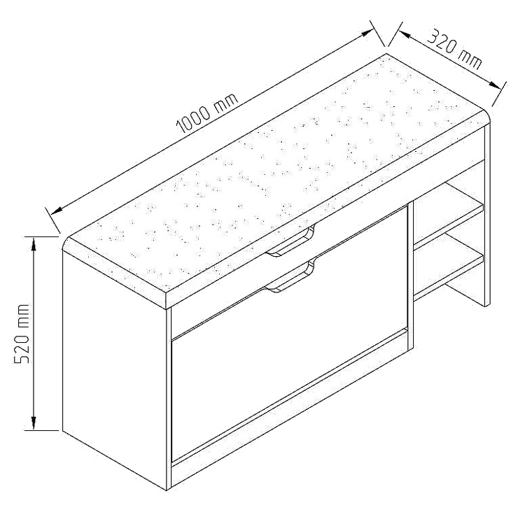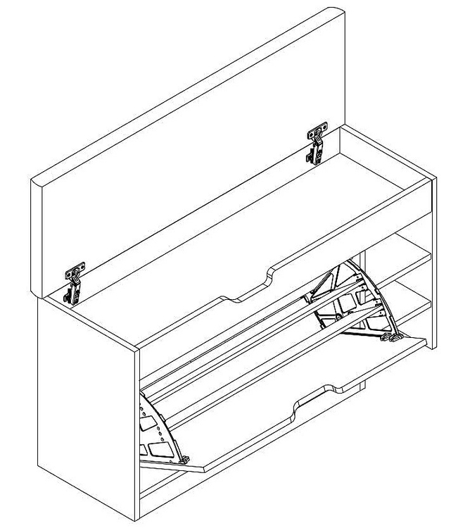 Botník s výklopem a policemi je vyrobený z desky LTD v barvě bílá. Pod výklopným polstrovaným sedákem černé barvy je praktický úložný prostor. Dodáváme v demontovaném stavu.CASA 98222