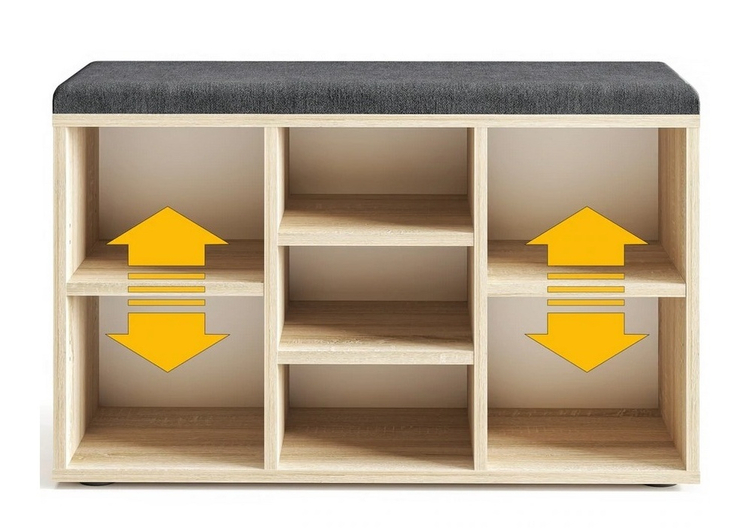 Botník s policemi je vyrobený z desky LTD v barvě dub sonoma. Výšku polic je možné zvolit podle vlastních potřeb. Barevné provedení sedáku se může od obrázku lišit. Dodáváme v demontovaném stavu.CASA 98277