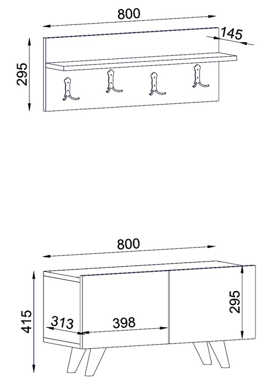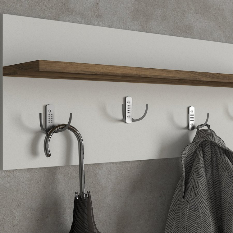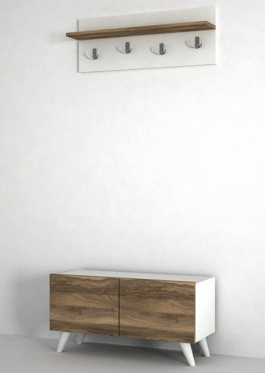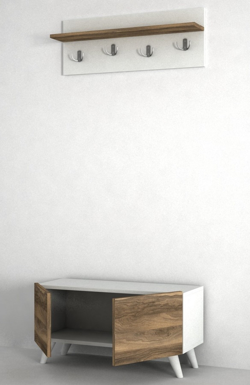 Botník je vyroben z kvalitního lamina o tl.18 mm hraněné PVC páskou, odolného proti poškrábání v kombinaci barev matná bílá/vlašský ořech. Součástí balení je také věšák s policí o rozměrech (Š x V x H cm) 80 × 29,5 × 14,5 cm. Dodáváme v demontovaném stavu.CASA 28042