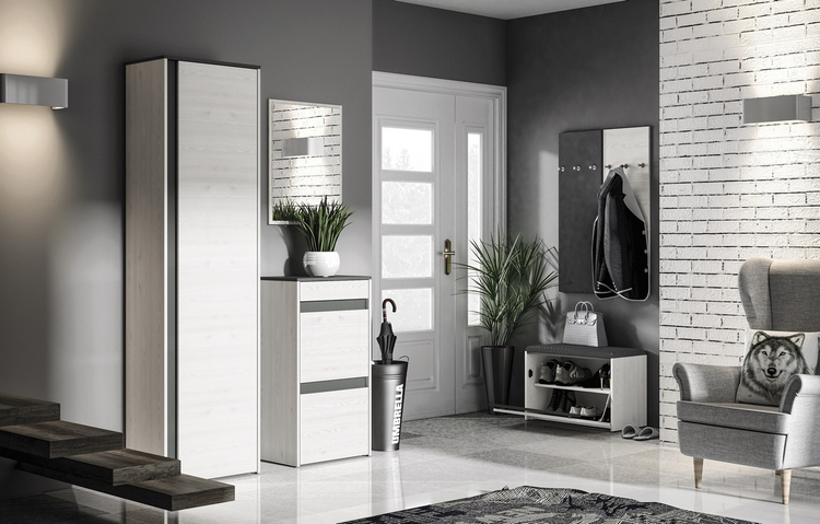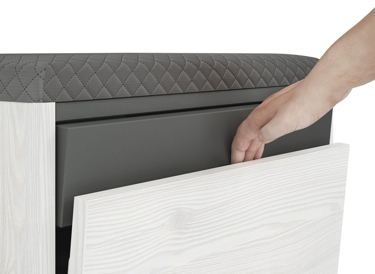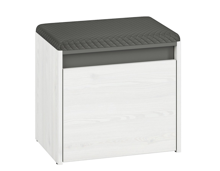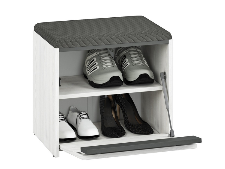 Botník s výklopnými dvířky a polstrovaným sedákem je vyroben z desky LTD v kombinaci barev borovice sněžná/antracit. Dodáváme v demontovaném stavu.CASA 56015