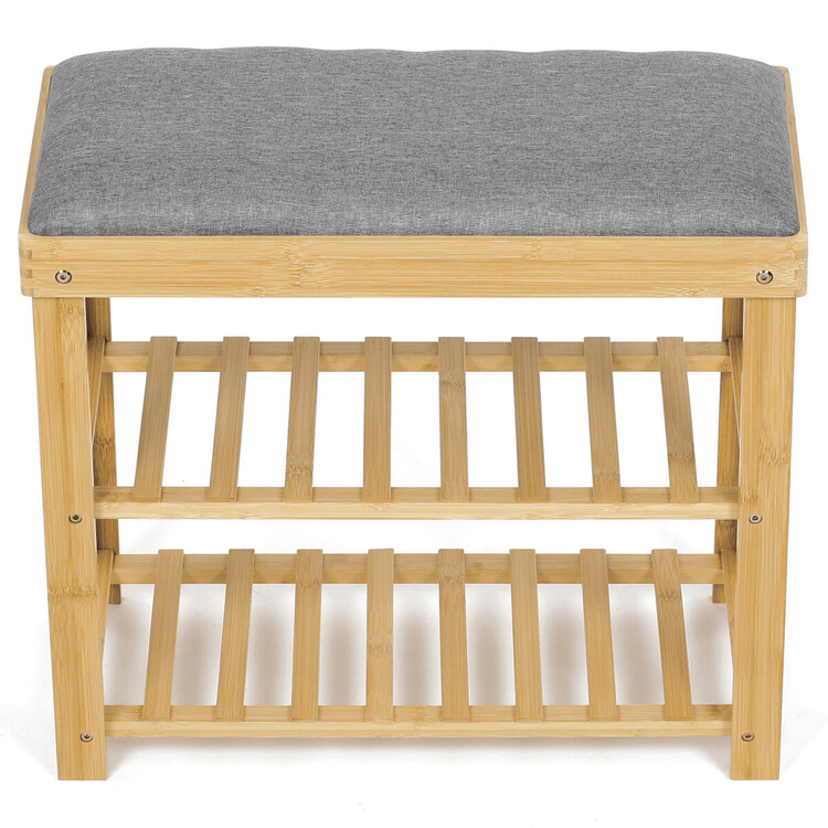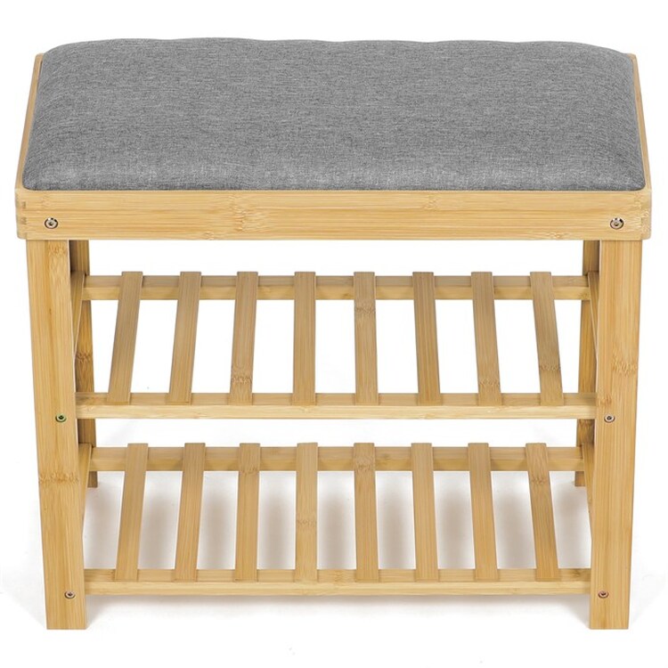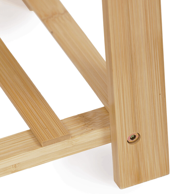 Botník a taburet DR-N1010 GREY2 značky Autronic kombinuje funkčnost s přírodní estetikou díky konstrukci z masivního bambusu v přírodním odstínu, která zajišťuje pevnost a dlouhou životnost. Sedák je čalouněný šedou látkou s jemnou strukturou, která poskytuje pohodlné posezení a zároveň doplňuje minimalistický design. Dvě police tvořené bambusovými latěmi nabízejí praktický úložný prostor pro uložení obuvi nebo drobných předmětů, přičemž otevřená konstrukce umožňuje cirkulaci vzduchu a snadnou údržbu. Robustní rám je sestavený pomocí kovových spojovacích prvků, které zvyšují stabilitu celého výrobku. Kompaktní rozměry a ergonomické tvarování sedáku zajišťují komfortní sezení i v menších prostorách, což činí botník vhodným do předsíní či chodeb s omezeným prostorem. Nosnost výrobku odpovídá běžnému zatížení při sezení a ukládání obuvi, což zaručuje jeho všestranné využití v domácnostech s důrazem na přírodní materiály a jednoduchý design.