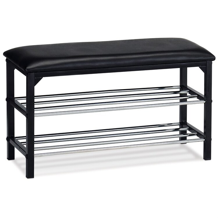 Botník s taburetem kombinuje praktické uspořádání s pohodlným posezením. Černý matný kovový rám je doplněn o dvě chromované police, které poskytují dostatek prostoru pro uložení obuvi. Sedák je potažen černou ekokůží, která se snadno udržuje a nabízí komfortní místo k sezení při obouvání.... více informací o zboží