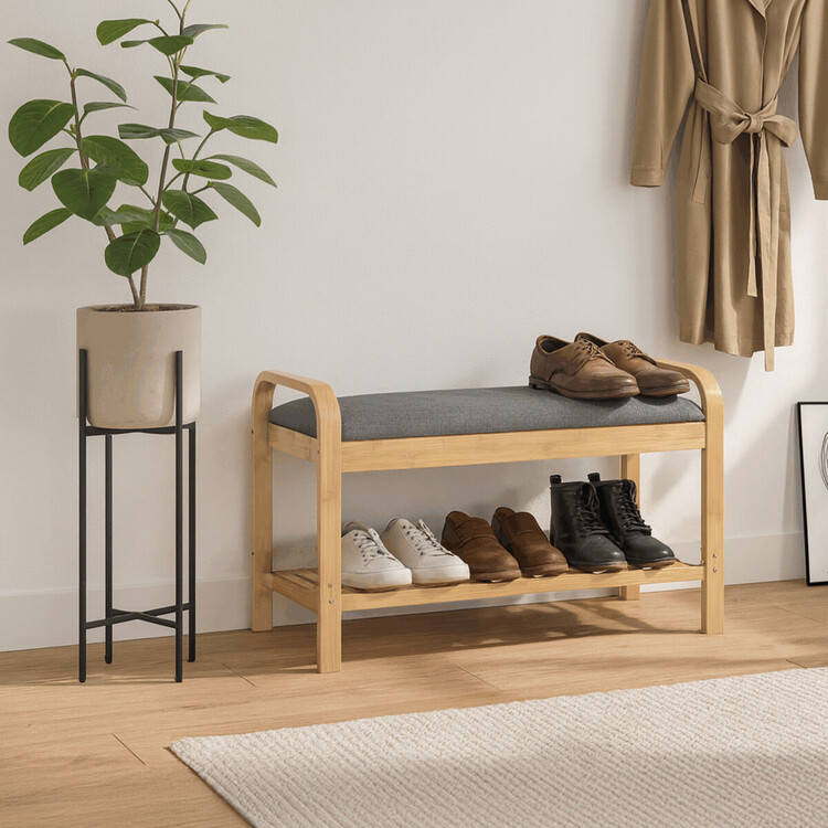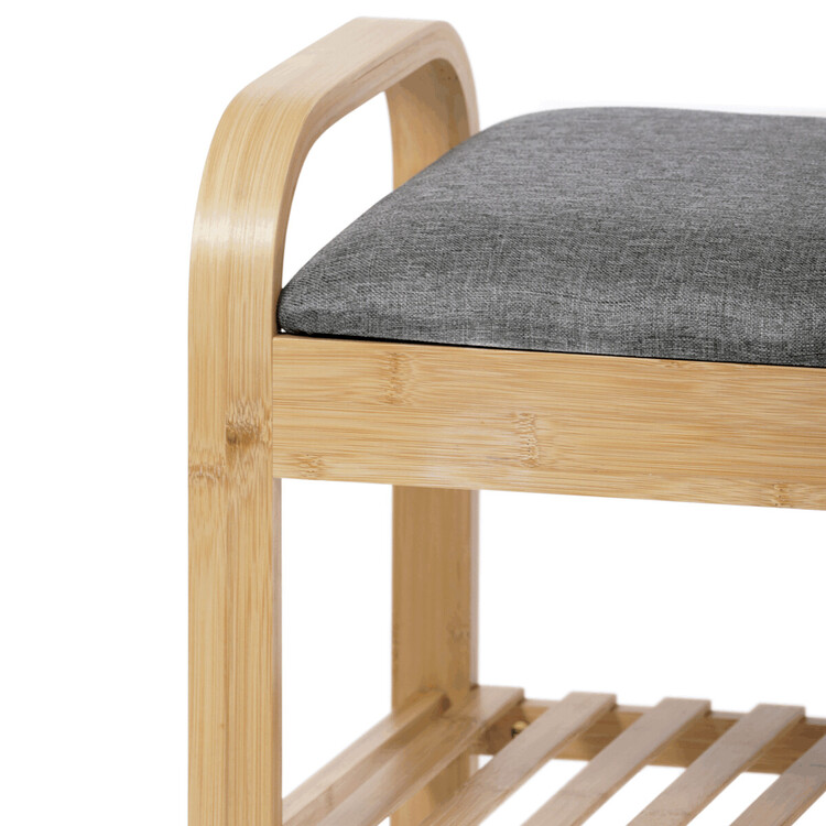 Stylový a praktický botník z kvalitního bambusu kombinuje úložný prostor s pohodlným místem k sezení. Botník má přírodní barvu, která se snadno sladí s jakýmkoliv interiérem. Polstrovaný sedák v šedé barvě poskytuje komfort při obouvání. Tento botník je ideální volbou pro ty, kdo hledají funkční a estetické řešení pro ukládání bot a zároveň ocení pohodlí při každodenním používání. Skvělý doplněk do moderního domova.