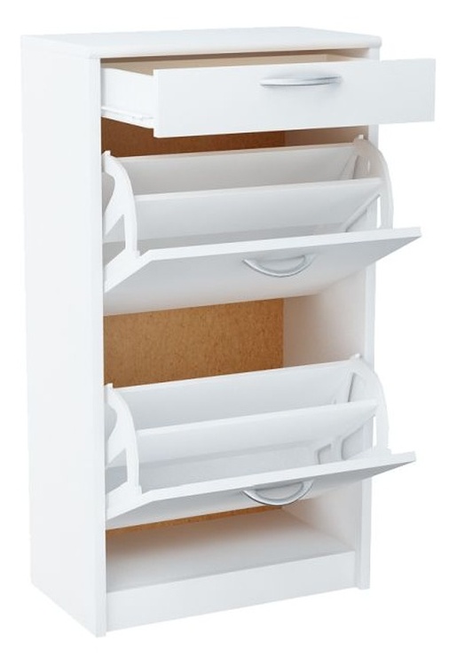 Dvoudveřový botník s 1 zásuvkou v moderním provedení. Korpus i dvířka jsou z kvalitní LTD v barvě matná bílá. Lamino je odolné vůči vysokým teplotám, poškrábání a nárazům, hraněné ABS páskou. Jasně viditelná struktura dřeva. Pojezdy v zásuvce jsou kovové s plastovými kolečky. Dodáváme v demontovaném stavu.CASA 53018