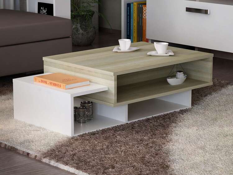 Konferenční stolek je ideální volbou pro ty, kteří hledají moderní a funkční nábytek. Jeho kombinace bílé a světle hnědé barvy a minimalistický design přinášejí do vašeho domova svěžest a moderní styl, zatímco poskytují dostatek úložného prostoru pro všechny vaše potřeby.