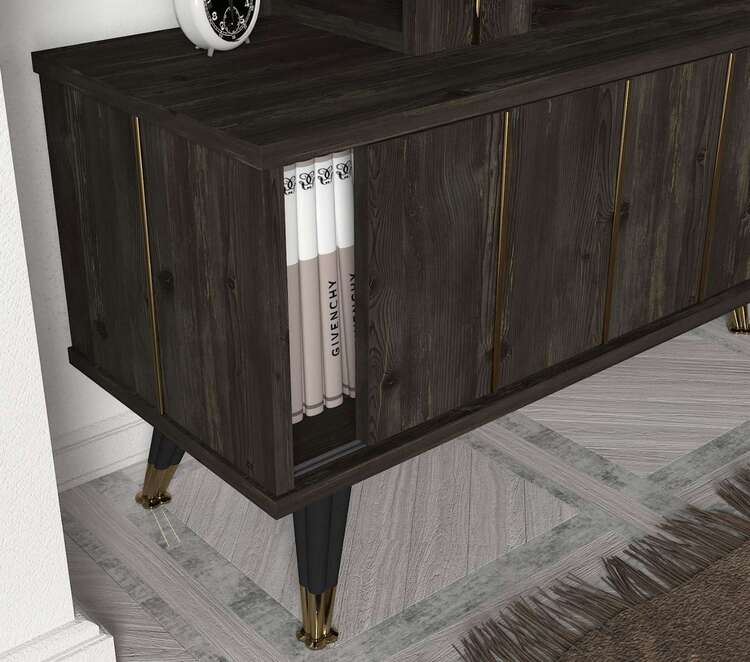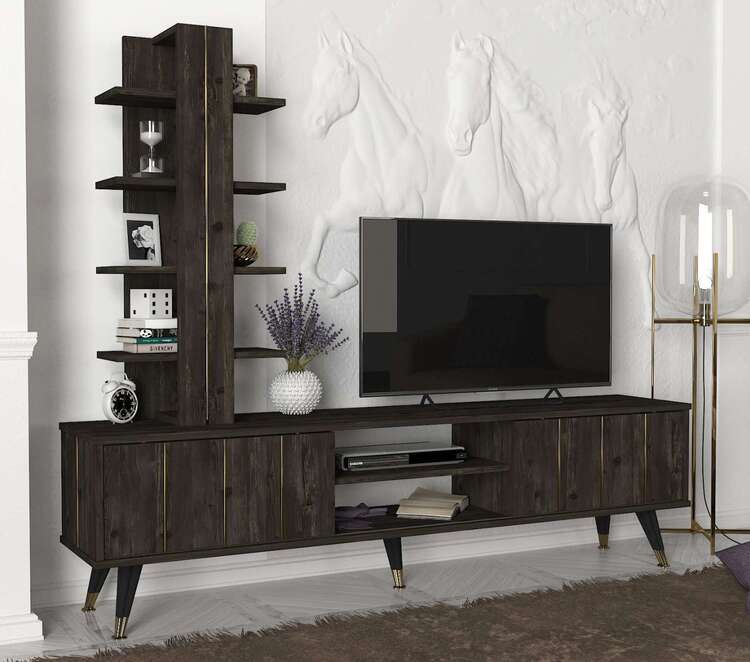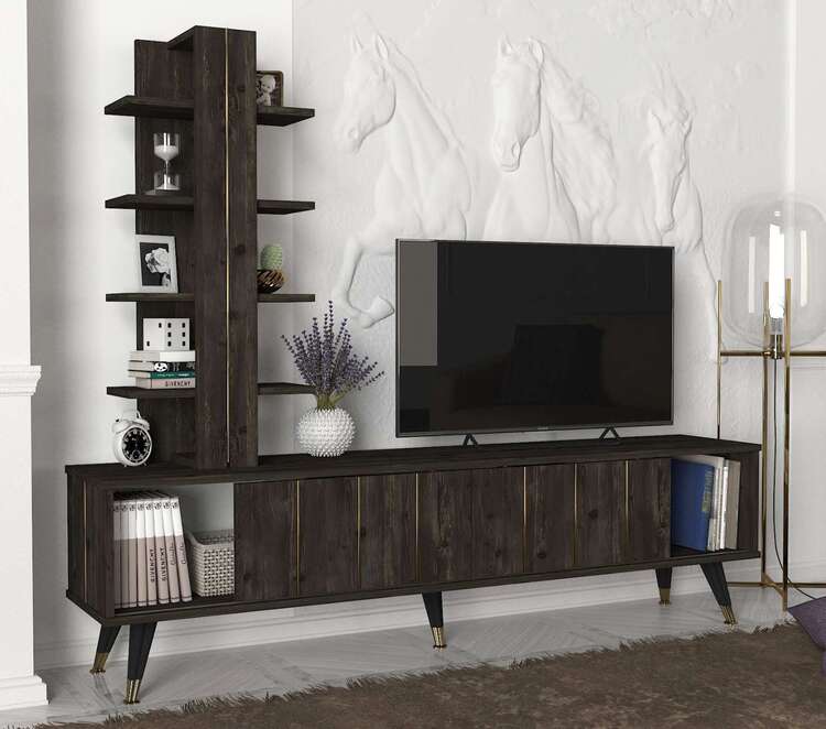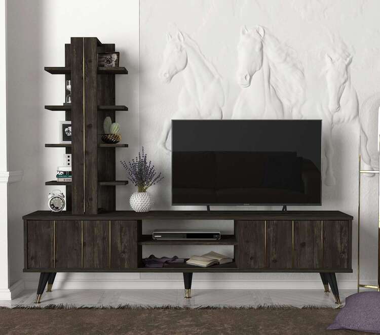Představujeme TV stolek, který dokonale spojuje funkčnost s elegantním designem. Jeho robustní konstrukce a tmavě hnědá barva přináší do každého obývacího pokoje pocit tepla a domácnosti.