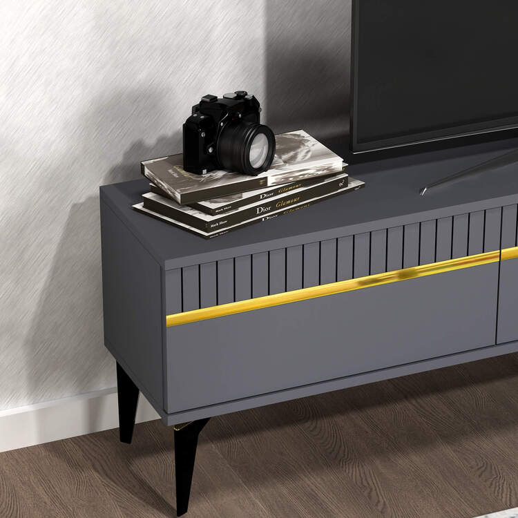TV stolek je perfektním spojením elegance a funkčnosti, které zaujme každého milovníka moderního designu. Jeho luxusní vzhled a praktické uspořádání dělají z tohoto stolku ideální doplněk pro váš obývací pokoj.