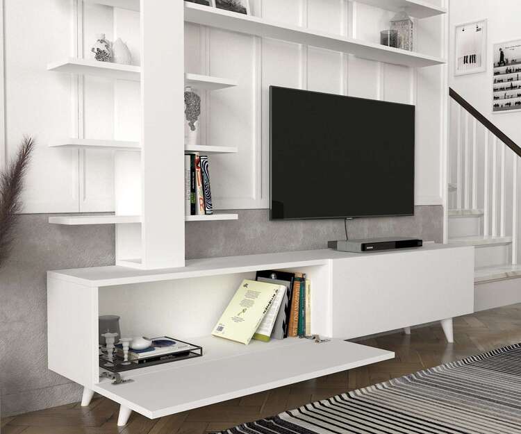 Seznamte se s TV stolkem, který svým skandinávským designem a bílou barvou přináší do vašeho obývacího pokoje svěží a vzdušný vzhled. S jeho minimalistickým stylem a funkčními prvky je ideální volbou pro ty, kdo hledají jednoduchost a eleganci.
