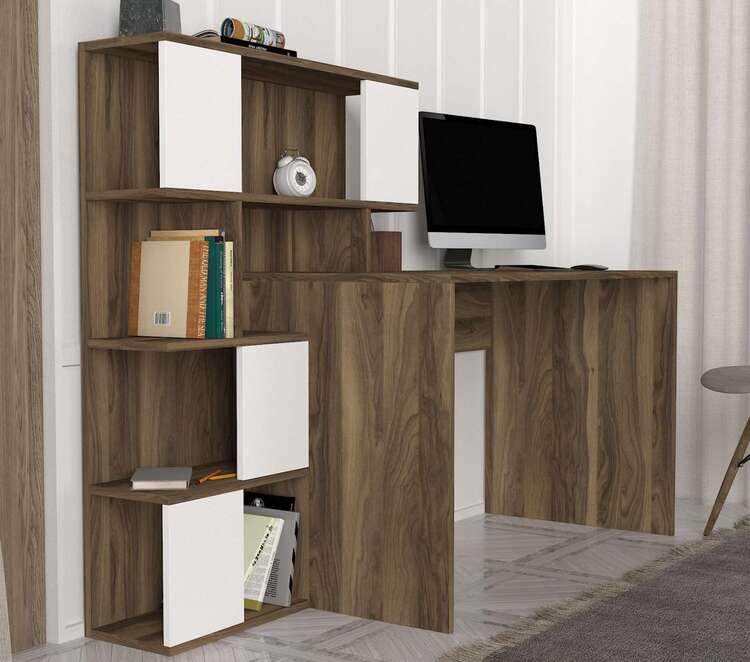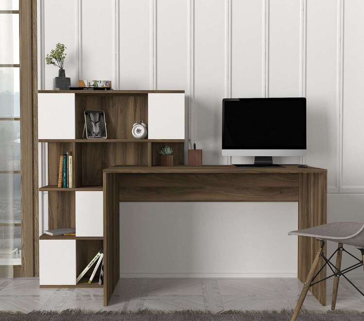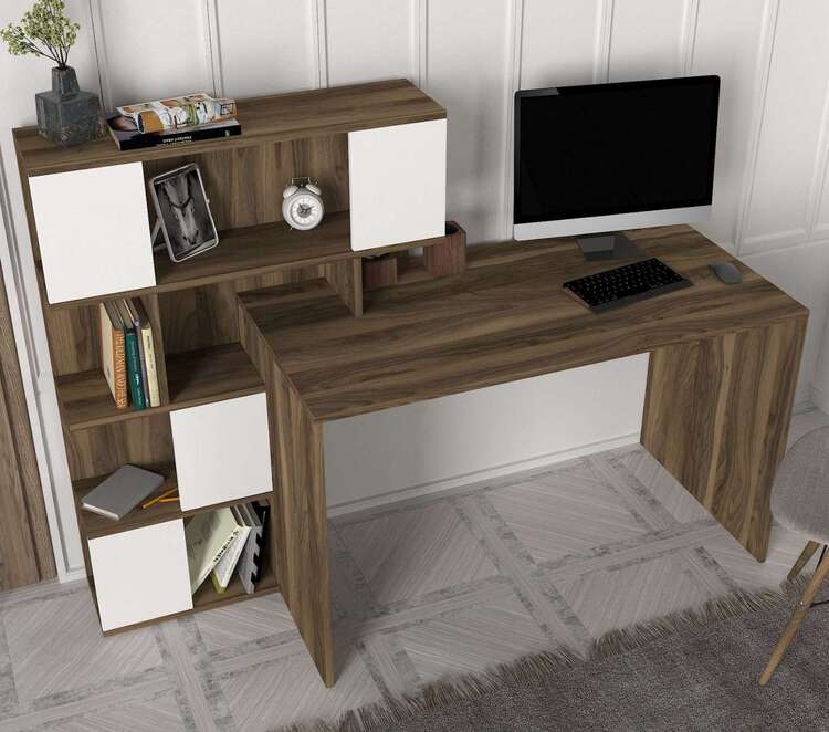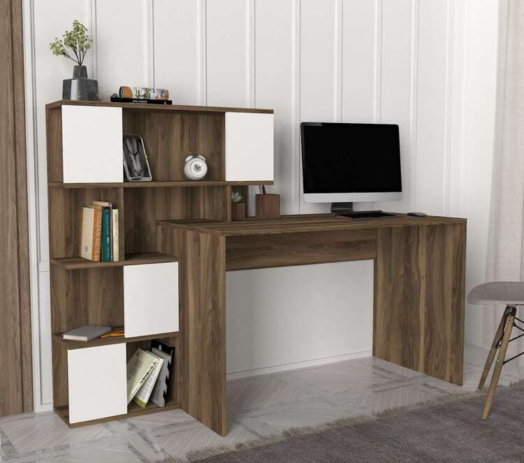Písací stůl je vyroben z kvalitního LTD materiálu s tloušťkou 18 mm, což zajišťuje jeho pevnost a dlouhou životnost. Elegantní kombinace bílé a ořechové barvy dodává stolu moderní a stylový vzhled, který se hodí do jakéhokoliv interiéru. Stůl je vybaven praktickým regálkem, který poskytuje dostatek úložného prostoru pro vaše pracovní potřeby a pomůcky.