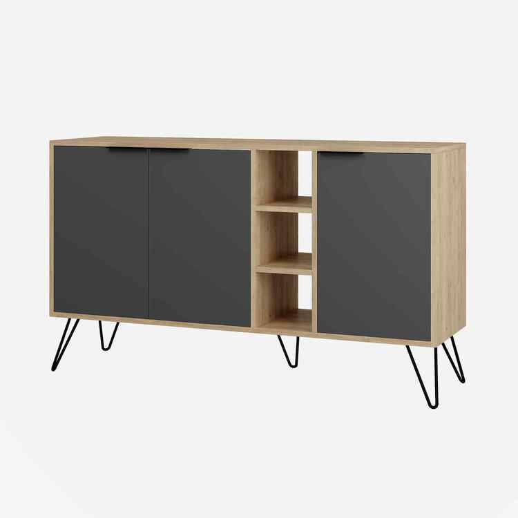 Moderní antracitové provedení v kombinaci s dubovým dřevem z něj dělá