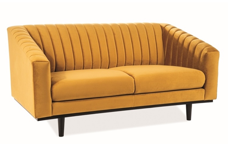 Čalouněné dvojkřeslo – pohovka v elegantním stylu bude ozdobou každého interiéru. Nožky jsou ze dřeva v barvě wenge, čalounění je z látky aksamit ve žluté curry barvě. Pohodlí a elegance v kvalitním provedení ve Vašem obýváku, dětském pokoji či kanceláři.CASA 11002