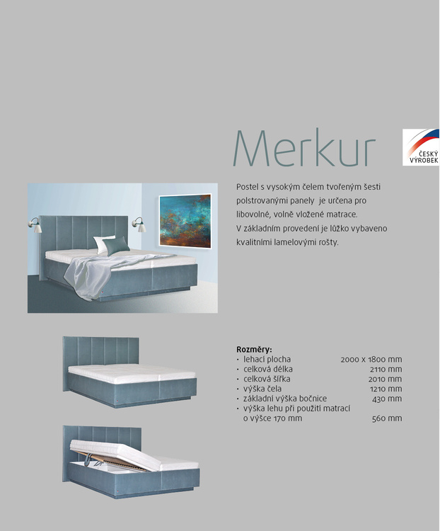 polstrovanými panely. Postel je určena pro libovolné, volně vložené