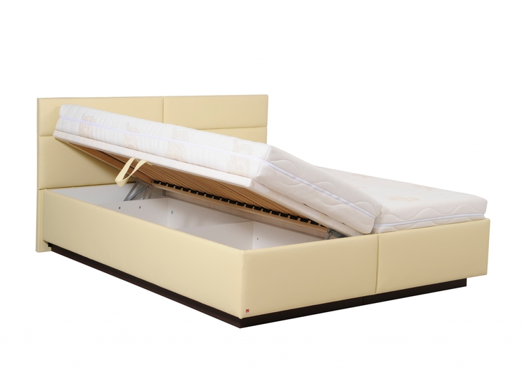 Toto lůžko, vzhledově odlehčené soklíkem, se díky výraznému čelu