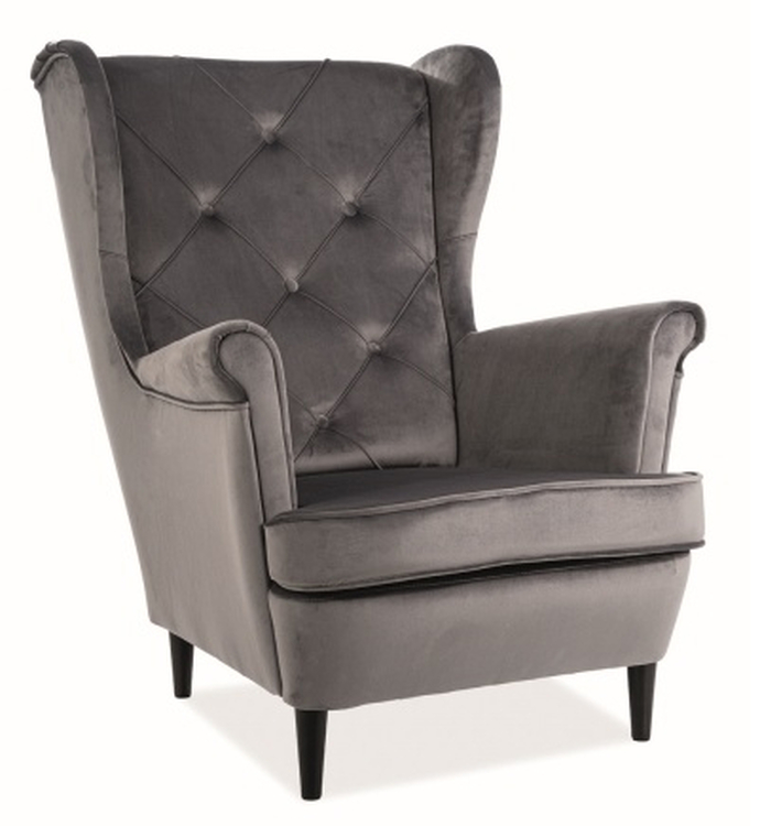 Pohodlné čalouněné křeslo v elegantním stylu bude ozdobou každého interiéru. Nožky jsou ze dřeva v barvě wenge, čalounění je z látky velvet v šedé barvě (Bluvel 14). Pohodlí a elegance ve Vašem obýváku, dětském pokoji či kanceláři.CASA 11017