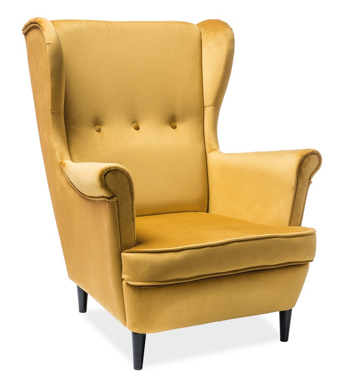 Velmi pohodlné čalouněné křeslo v elegantním stylu bude ozdobou každého interiéru. Nožky jsou ze dřeva v barvě wenge, čalounění je z luxusní látky velvet v barvě žlutá curry. Pohodlí a elegance v kvalitním provedení ve Vašem obýváku, dětském pokoji či kanceláři.CASA 11024