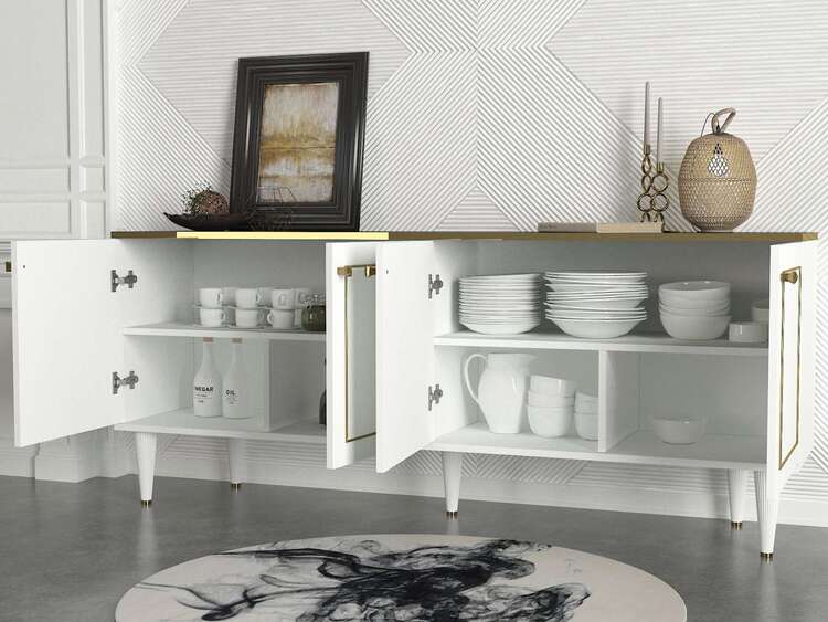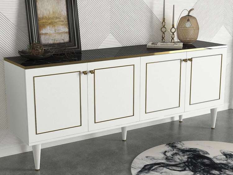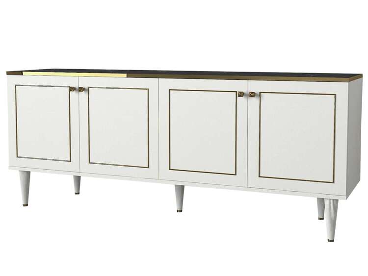 Komoda je vyrobena z kvalitního LTD materiálu s tloušťkou 18 mm, což zajišťuje její pevnost a dlouhou životnost. Elegantní kombinace bílé barvy a mramorového dekoru dodává komodě luxusní a sofistikovaný vzhled, který se hodí do jakéhokoliv interiéru. Komoda je vybavena čtyřmi dvířky, které poskytují dostatek úložného prostoru pro vaše potřeby.