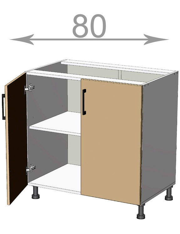 Kuchyňský sektor Capri, dolní skříňka, šířka 80 cm, 2 dvířka, korpus grafit, dvířka dub Craft šedý. Představujeme vám kuchyňský sektor Capri – nejlevnější kuchyni s možností poskládat si vlastní kuchyňskou sestavu ze skříněk dle svých potřeb a prostoru. Kupujte chytře a výhodně! Kuchyňská linka na míru vás nemusí stát majlant. U kuchyně Capri máte na výběr víc jak 10 barev kuchyňských dvířek jak v dřevodekoru, tak v unikolorech. Zvolit si lze i barvu korpusu, takže výsledná kuchyňská linka na míru se bude krásně hodit do vaší kuchyně jak rozměrem tak barvou. Pracovní deska a sokl se objednávají zvlášť. Vyberte si u nás barvu pracovní desky a soklu tak, aby ladily Vaší kuchyni! Nožky jsou vysoké 10 cm (v ceně),v nabídce máme i nožky 15 cm. Výhodou je, že úchyty skříněk jsou součástí dvířek a tudíž jsou v ceně.