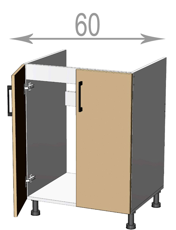 Kuchyňský sektor Capri, dolní dřezová skříňka, šířka 60 cm, 2 dvířka, korpus bílý, dvířka dub Craft šedý. Skříňka je konstrukčně určená pod dřez. Představujeme vám kuchyňský sektor Capri – nejlevnější kuchyni s možností poskládat si vlastní kuchyňskou sestavu ze skříněk dle svých potřeb a prostoru. Kupujte chytře a výhodně! Kuchyňská linka na míru vás nemusí stát majlant. U kuchyně Capri máte na výběr víc jak 10 barev kuchyňských dvířek jak v dřevodekoru, tak v unikolorech. Zvolit si lze i barvu korpusu, takže výsledná kuchyňská linka na míru se bude krásně hodit do vaší kuchyně jak rozměrem tak barvou. Pracovní deska a sokl se objednávají zvlášť. Vyberte si u nás barvu pracovní desky a soklu tak, aby ladily Vaší kuchyni! Nožky jsou vysoké 10 cm (v ceně),v nabídce máme i nožky 15 cm. Výhodou je, že úchyty skříněk jsou součástí dvířek a tudíž jsou v ceně.