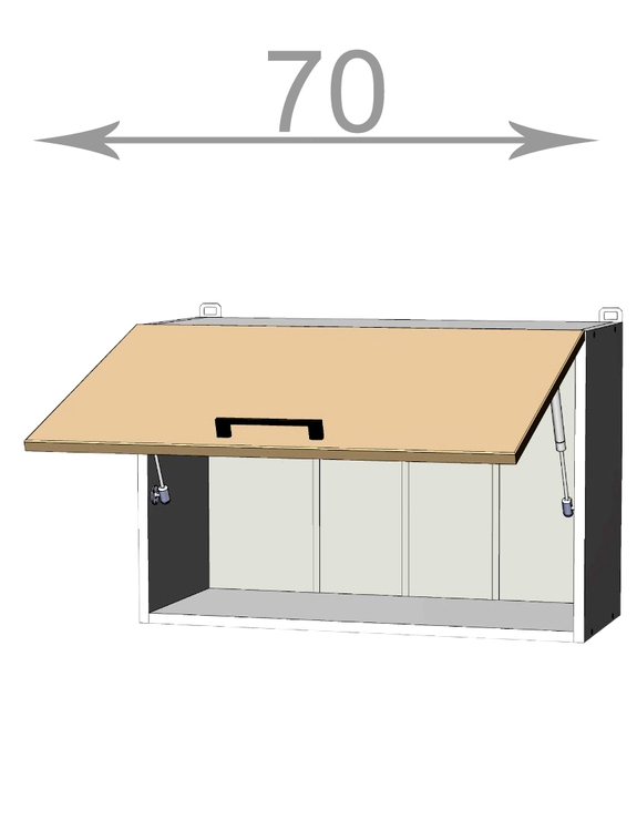 Kuchyňský sektor Capri, horní vysoká výklopná skříňka, šířka 70 cm, 1 dvířko, korpus grafit, dvířka dub Craft bílý. Vyšší výklopná skříňka, vhodná pokud používáte horní skříňky výšky 92 cm. Představujeme vám kuchyňský sektor Capri – nejlevnější kuchyni s možností poskládat si vlastní... více informací o zboží