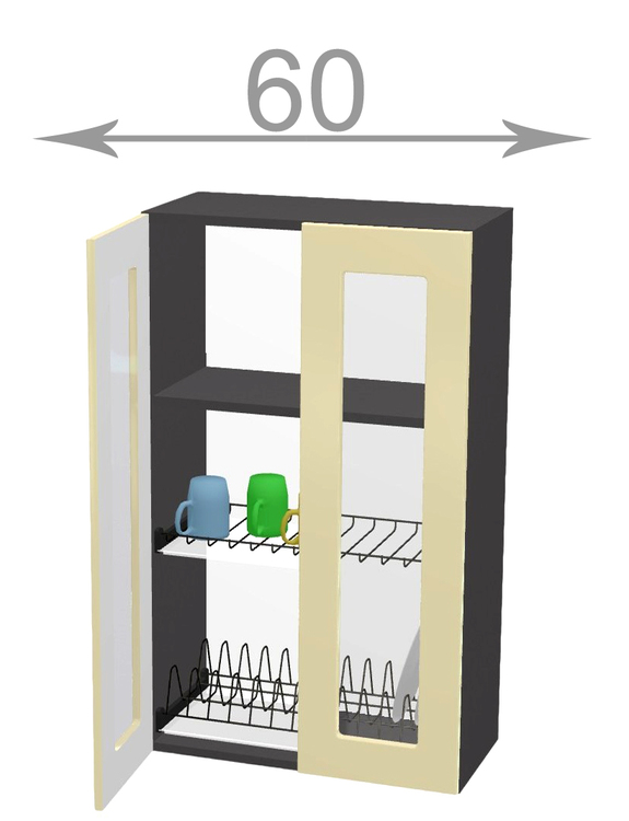 Kuchyňský sektor Capri, horní vysoká vitrína s odkapávačem, šířka 60 cm, 2 dvířka, korpus grafit, dvířka dub Craft bílý. Vyšší vitrína s odkapávačem na nádobí do zástavby horních skříněk 92 cm. Představujeme vám kuchyňský sektor Capri – nejlevnější kuchyni s možností poskládat si vlastní... více informací o zboží