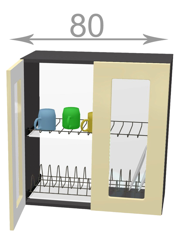 Kuchyňský sektor Capri, horní vitrína s odkapávačem, šířka 80 cm, 2 dvířka, korpus dub Sonoma, dvířka grafit. Uvnitř skříňky je vestavěný odkapávač na nádobí. Představujeme vám kuchyňský sektor Capri – nejlevnější kuchyni s možností poskládat si vlastní kuchyňskou sestavu ze skříněk dle svých... více informací o zboží