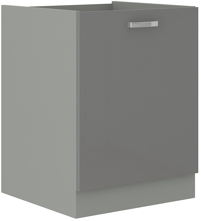 Dolní skříňka jednodveřová GREY vyrobená z kvalitního lamina a MDF. Korpus i sokl ( 10 cm ) jsou v barvě šedá a dvířka jsou v barvě grey šedá v lesku. Rozměry skříňky – šířka 60 cm, výška 82 cm, hloubka 52 cm ( s pracovní deskou zabere 60 cm ). Vzadu se nechává volný prostor. Pracovní deska... více informací o zboží
