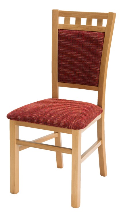 Kvalitní masivní židle s čalouněným podsedákem a opěradlem.