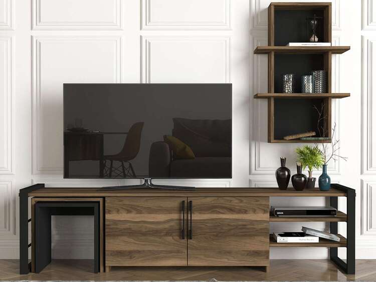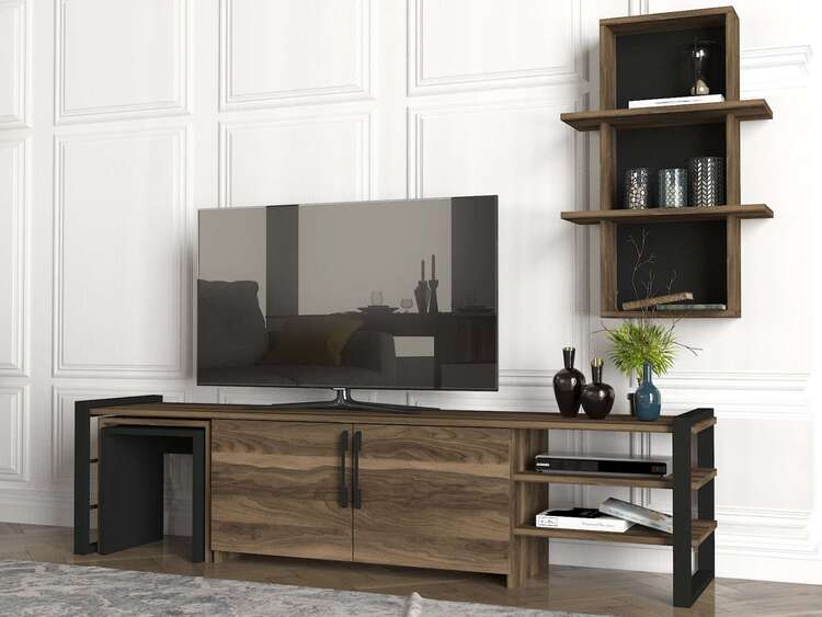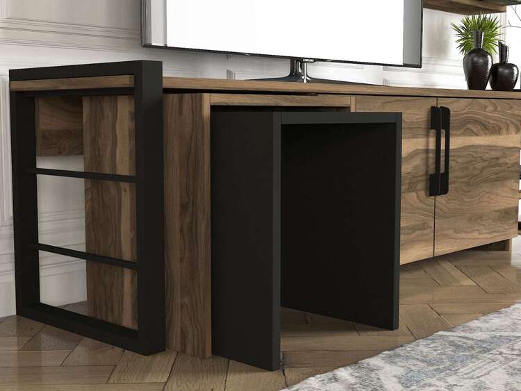 Seznamte se s obývací stěnou, která přináší do vašeho obývacího pokoje sofistikovaný mix ořechové a černé barvy. Tato sestava je navržena tak, aby byla nejen esteticky přitažlivá, ale také maximálně funkční, což z ní činí ideální volbu pro moderní domácnosti.