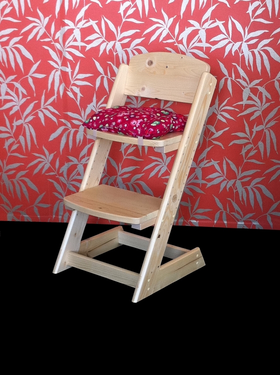 Možnost objednání čalouněného sedáku nebo opěráku. Dětská rostoucí židle má dřevěný sedák a opěrák. Dětská rostoucí židle Luka má nastavitelnou výšku sedáku a nastavitelnou výšku opěrky pro nohy.Dětská dřevěná židle je dodávána v demontu, baleno v kartonové krabici.