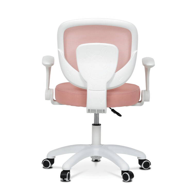 Dětská židle s růžovým síťovinovým potahem nabízí lehké a vzdušné sezení vhodné pro mladší uživatele. Bílý plastový kříž zajišťuje stabilitu a zároveň je odolný vůči běžnému opotřebení, zatímco kolečka jsou přizpůsobena pro použití na tvrdých podlahách, což usnadňuje pohyb bez poškození povrchu. Odklápěcí plastové područky umožňují snadné přizpůsobení prostoru kolem židle. Výškově nastavitelný mechanismus umožňuje individuální nastavení sedáku podle potřeby dítěte, čímž podporuje správnou ergonomii během práce nebo studia. Židle je navržena tak, aby kombinovala funkčnost s příjemným designem vhodným do dětského pokoje.