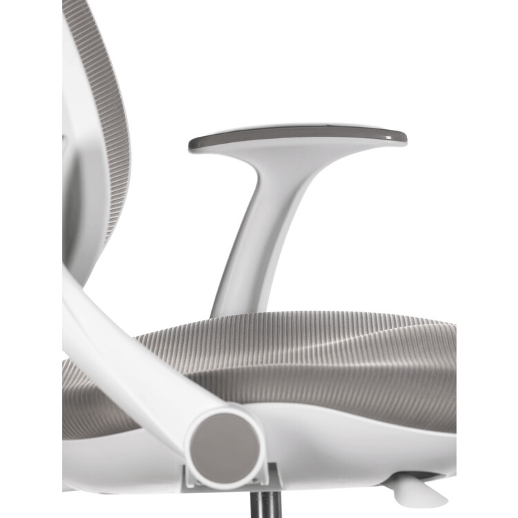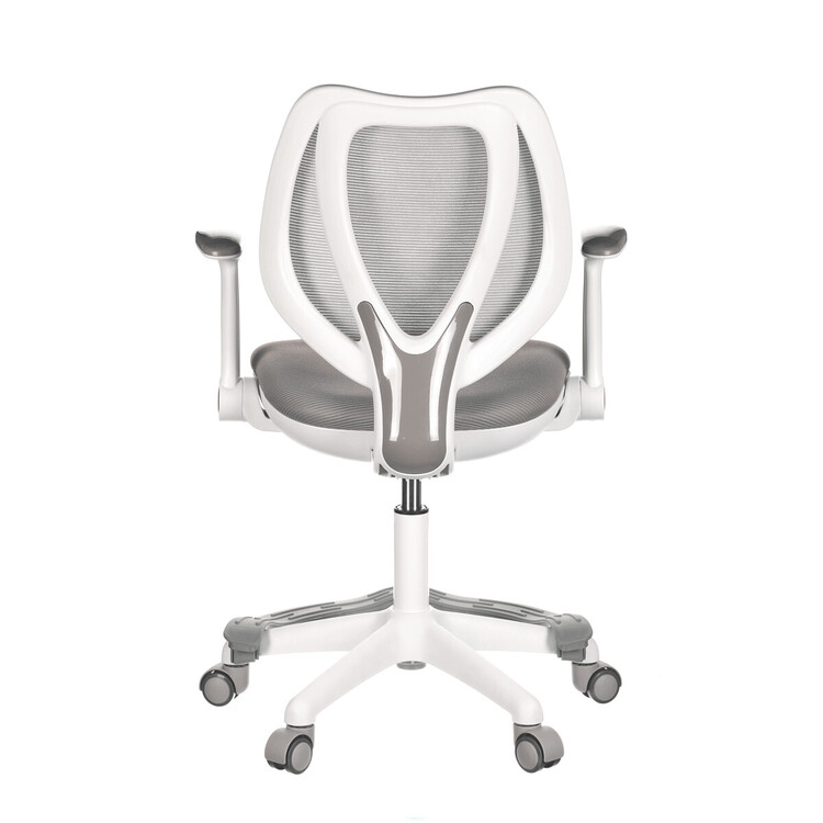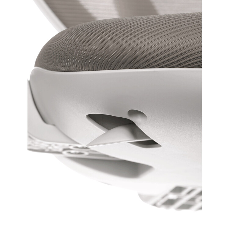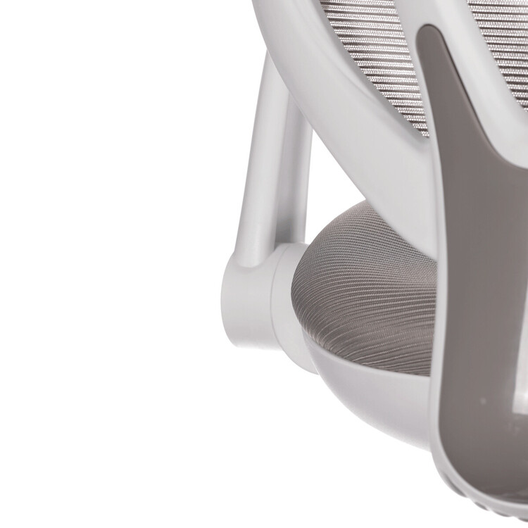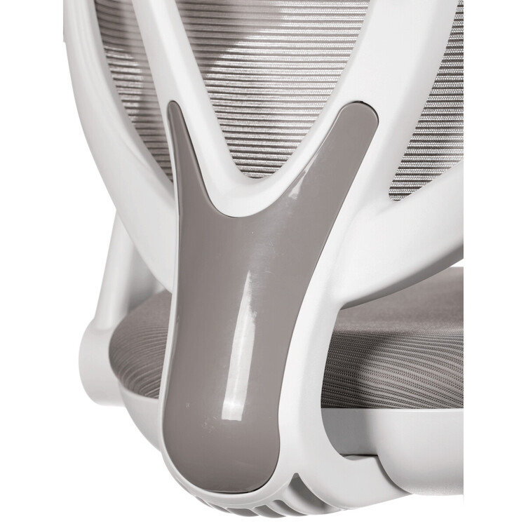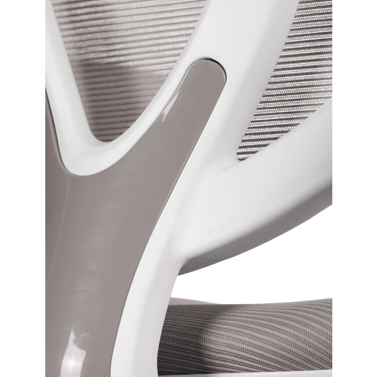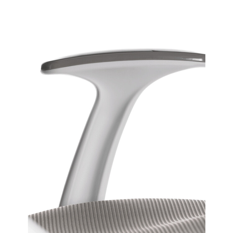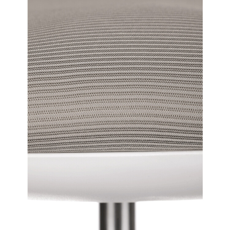Židle má pevný opěrák potažený prodyšným síťovaným materiálem. Sedák ve stejném potahu poskytuje dostatek pohodlí díky svému vyměkčení.
