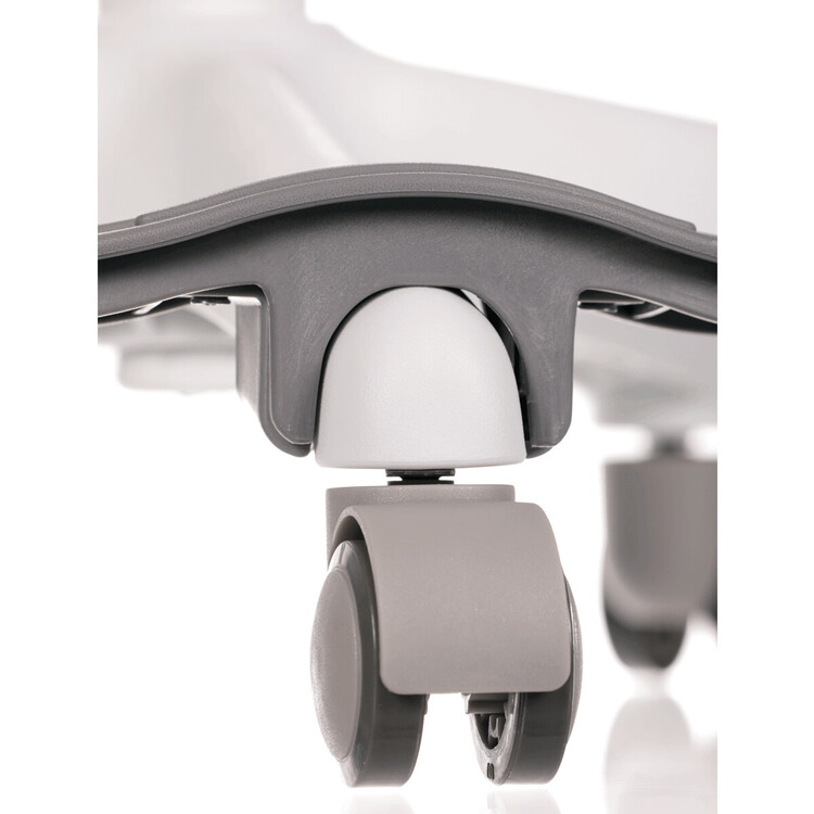 Židle je opatřena speciálními funkčními kolečky, která se při zatížení automaticky zablokují, což zabraňuje nechtěným pohybům židle.