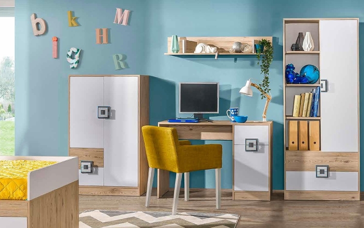 Dětský pokoj NIKO, který se vyznačuje netradičním zpracováním barev a originalitou úchytů. Tento styl nábytku zaujme každou mladší generaci. Sestava se skládá ( šxhxv ) – regál ( 80 × 40 × 190 cm ),komoda ( 80 × 40 × 130 cm ),pc stolek ( 120 × 50 × 78 cm ) a police ( 120 × 20 × 20 cm ). Nábytek je vyrobena z kvalitní LTD desky hraněné ABS lištou. Korpus je v barvě dub jasný, dveře jsou v kombinaci barev bílá mat / dub jasný. Úchytky jsou v barevné kombinaci popel / bílá. Jednotlivé díly lze koupit zvlášť. Sektorový nábytek NIKO má široký výběr prvků, který Vám zaručí sestavit si dětský nebo studentský pokoj, ložnici či kancelář podle svých potřeb, přání a představ. Dodáváme v demontovaném stavu.CASA 23004